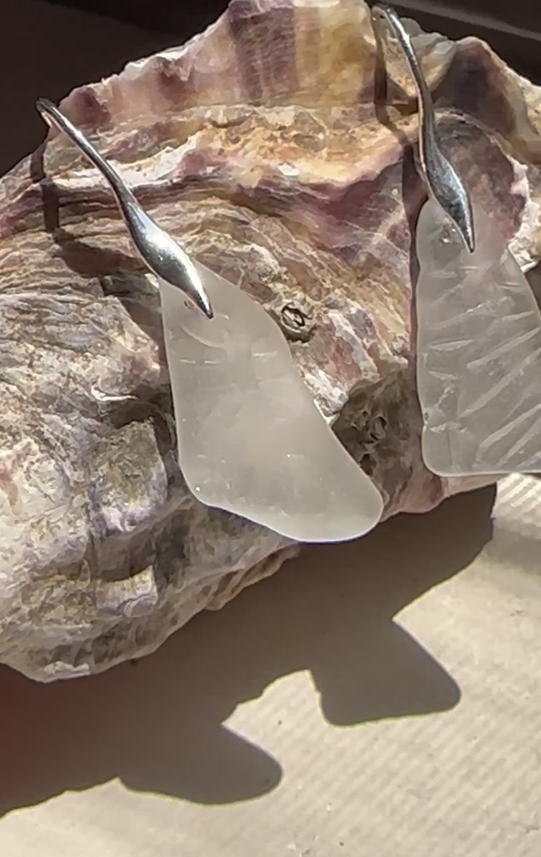 This simple yet elegant Scottish white sea glass silver earrings, is part of our sustainable jewelry collection using handpicked sea glass from the Isle of Lewis in north Scotland.